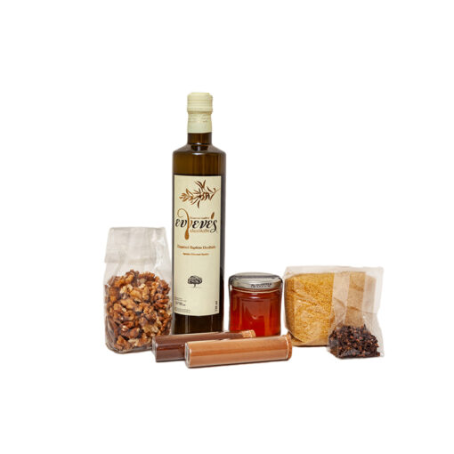 Ενα όμορφο δώρο για τα χριστούγεννα με την πιο γλυκια συνταγη του χρόνου!Μεσα στο κουτι υπάρχει η συνταγή που προτείνουμε και τα περισσότερα υλικά απο αυτά που μπορεί να μην υπάρχουν σε μια κουζίνα! περιλαμβάνει κανέλα, γαρίφαλο, μπεικιν πάουντερ, ζάχαρη καστανή, καρυδόψιχα, λάδι & μέλι συσκευασία 410γρ. Ενα τέλειο δώρο για τις γιορτινές μέρες!